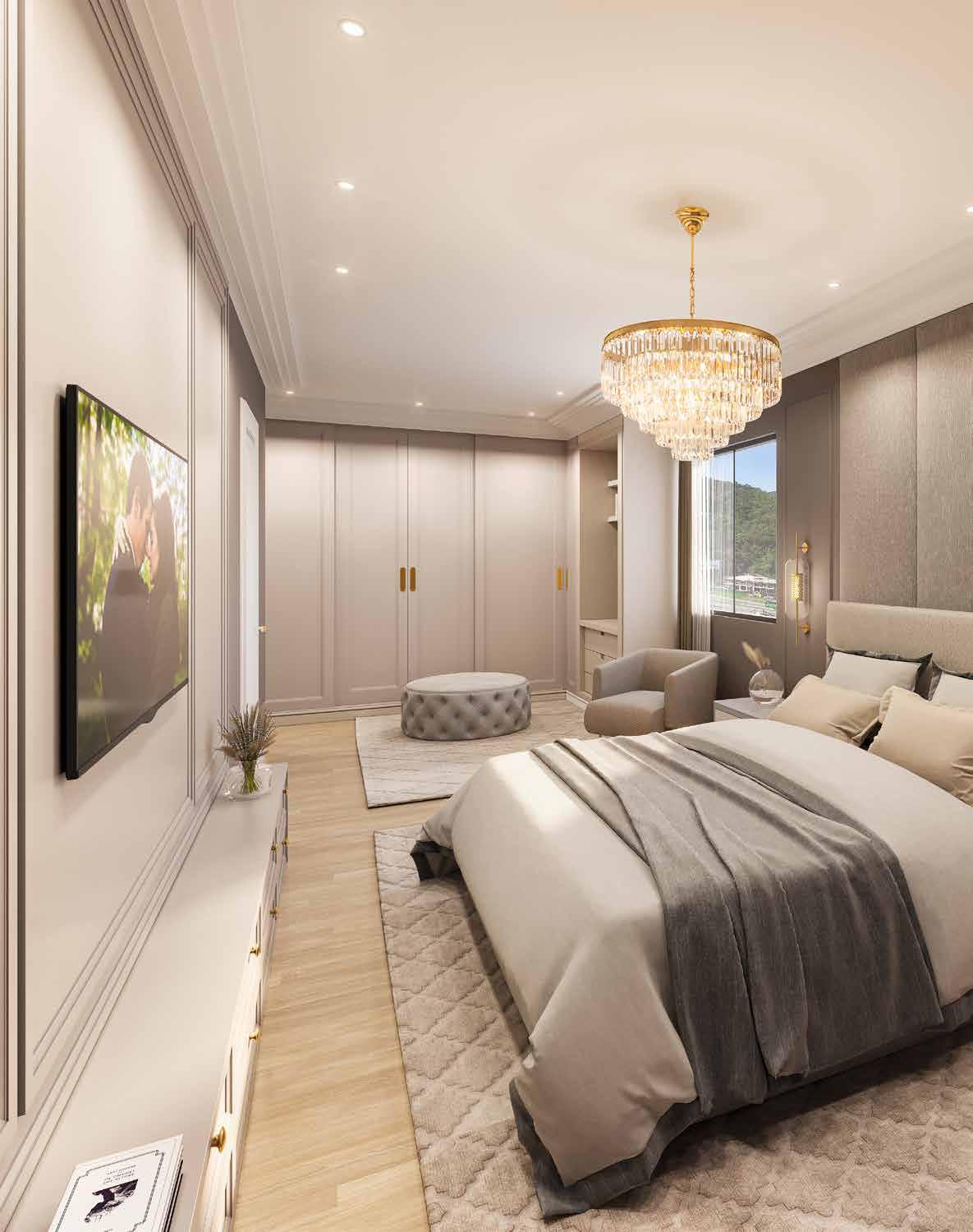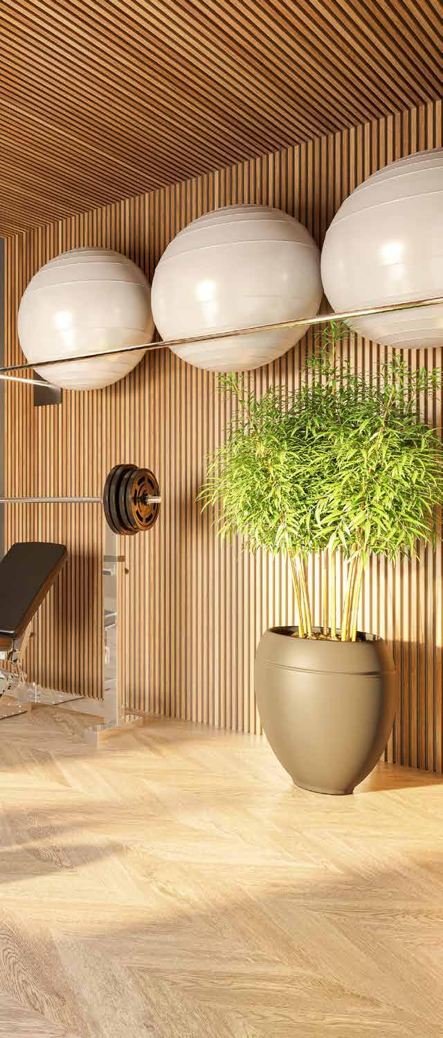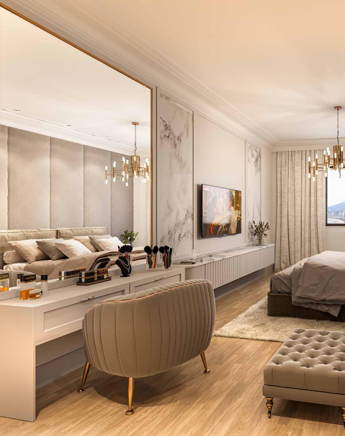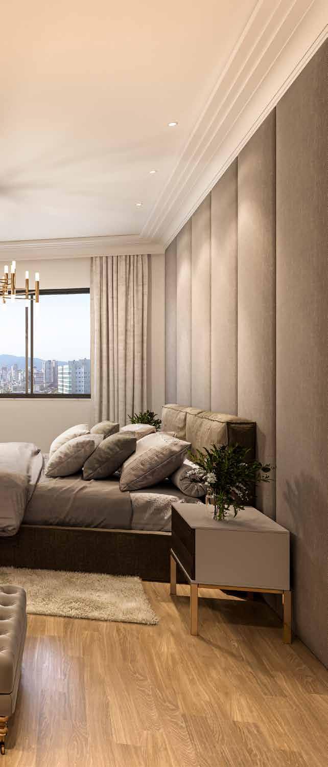 • Nos dormitórios, piso vinílico com excelente qualidade de acabamento, estética e ótimo desempenho em acústica e durabilidade;