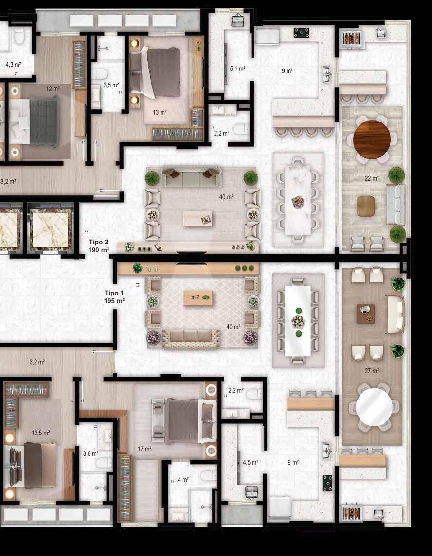 Tipos 2 - 190 m² privativos | 295 m² de área total