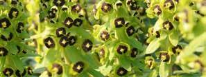 Gut verzweigt, hellgelb gerandetes Laub mit panaschierten Blüten im Frühling. Winterhart und immergrün.