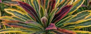 Foglie variegate giallo-verde con portamento arcuato. Decorativa tutto l’anno.
