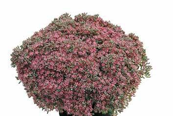 Sedum tappezzante a crescita densa, ricoperto da boccioli rossi da settembre e in fiore da metà settembre a fine ottobre in rosa chiaro.