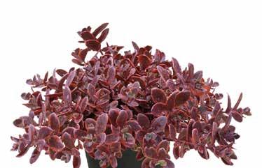 Dicht wachsend mit apfelgrünen, kirschrot umrandeten Blättchen. Bildet attraktive Teppiche und blüht ab August in zartem Rosaton.