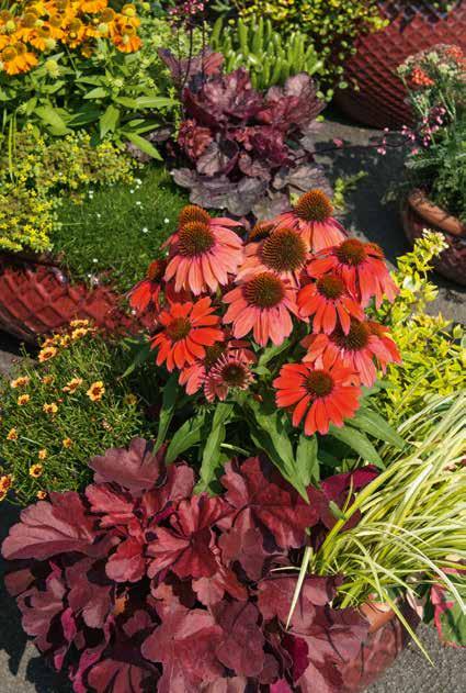 Specialità di Heuchera dal grande impatto decorativo. Foglie ampie color arancio opaco con delicata venatura rosso-bruna.