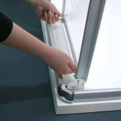 SMS steht für eine einfache und schnelle Montage • Silikonfreier Wandanschluss • Positionierung durch die Verstellschraube • Seitenteilstützen sind längenregulierbar • Montagehilfen erleichtern den Aufbau • Komponenten und Scharniere sind vormontiert • Montageanleitungen mit Problemlösungslisten •