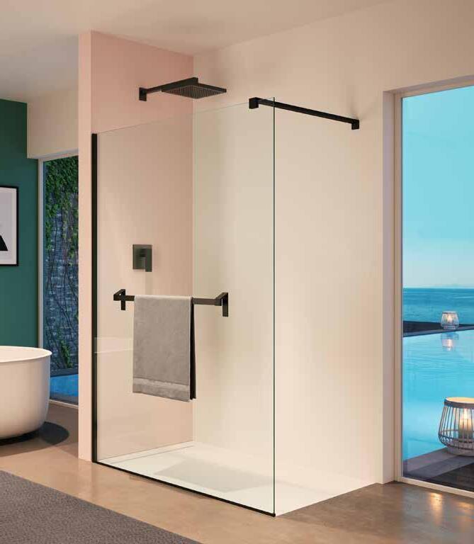 SMS stands for a simple and fast assembly • Silicone free wall junction • Positioning using the adjusting bolt • Side part supports are length adjustable • Assembly aids facilitate construction • Components and hinges are pre-mounted • Assembly instructions include problem solving lists •