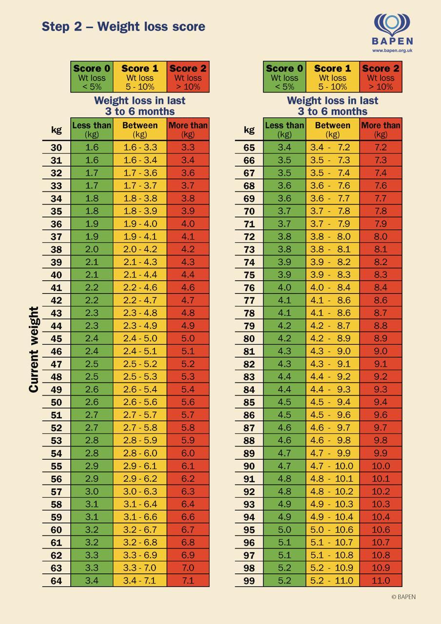 A summary of the patients’ weight, MUST scores and nutritional care plan will be included on the discharge summary if appropriate. To ensure that interventions can be continued on discharge