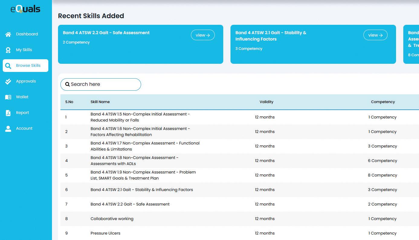 eQuals is a digital competency management platform that streamlines the recording of skills across clinical teams. It standardises workforce development tracking, enhancing visibility while reducing administrative burden.