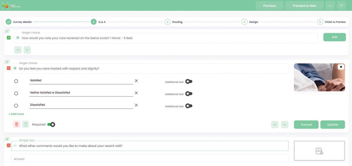 In addition to standard Friends and Family Test questions, ProvideMyExperience enables the creation of unlimited bespoke surveys designed around specific service or departmental requirements. A wide range of response types can be easily configured through a simple interface, including multiple choice, number ranges, emojis, and pre-defined fields. The smart routing functionality ensures respondents are presented with relevant follow-up questions based on their answers, improving both the quality and relevance of the feedback collected.
