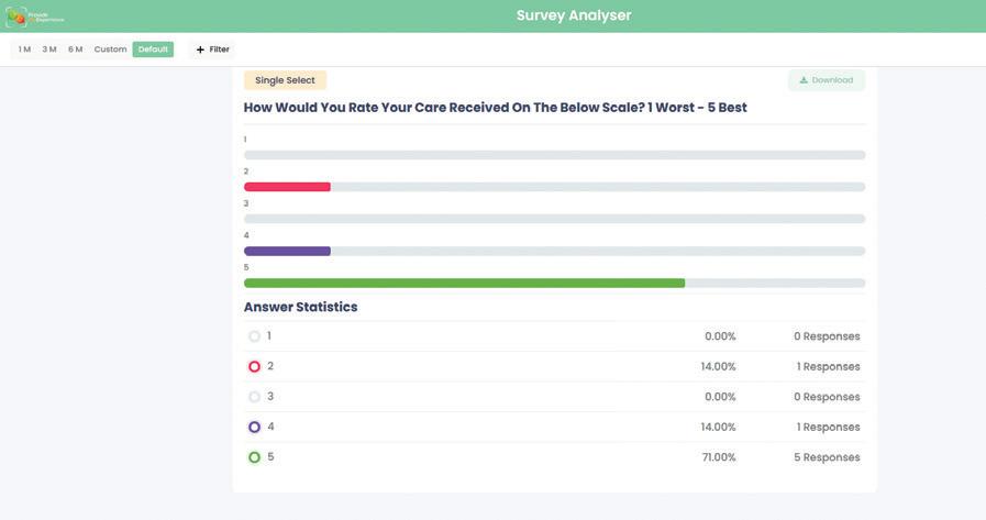 Live tracking of survey performance, allowing teams to act immediately on patient feedback to support improved outcomes.
