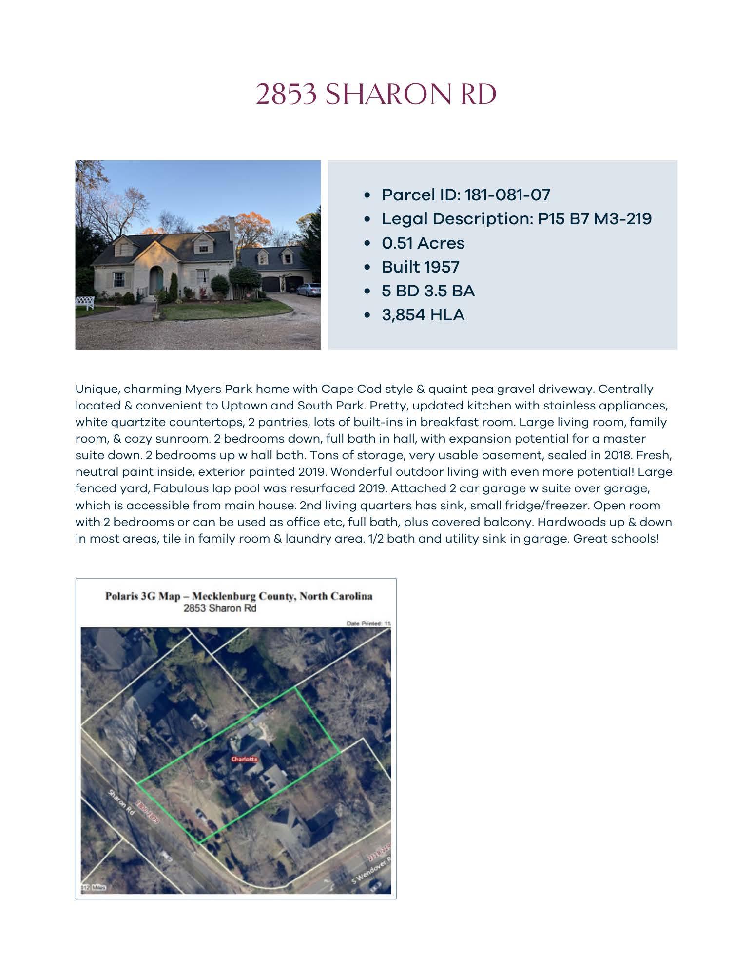 UpperLevel Heated -6875qft tes Draven By Email: Total SqFt:5,835 Site:2853 Sharon Road, Charlotte,NC28211 [PrecAntatpopented |StronaMeasham | ME ag measure, Heated goes oy