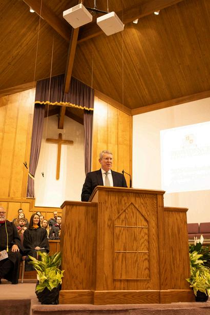 Mr David Vehaun, Rock Hill City Manager, delivers the commencement address