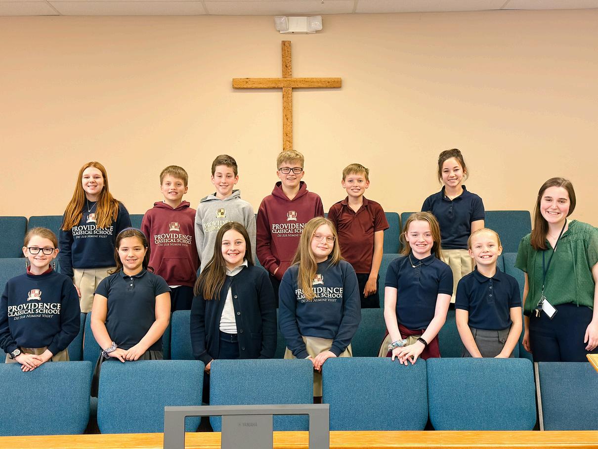 The Providence Classical School student body led a sanctuary filled with family and friends to worship the Newborn King at the 2024 Adeste Fideles Christmas Program TheeveningwasfilledwithScripture,music,andholyreverence “OurgoalforAdeste this year was to incorporate more Scripture and music throughout,” said Music DirectorVirginiaKateKirby “MyhopewastohighlightclassicChristmascarolsaswell asintroducethestudentstonew arrangements ”