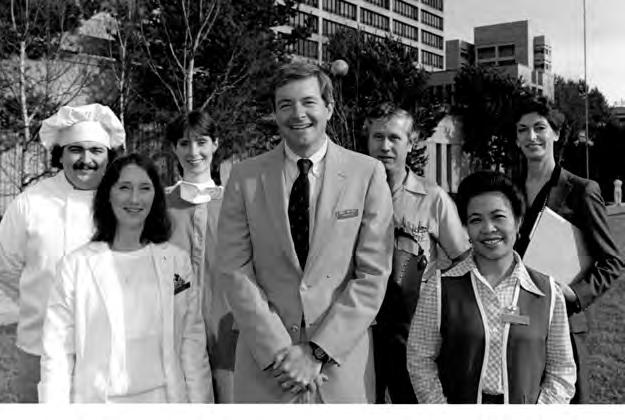 One of Tom’s first hires was facility manager Ken Zinsli, who laid out the footprint for the hospital’s services. Designed to emulate airport traffic flow, the site placed high-traffic and acute care services at the east end of the hospital, flowing toward moreintensive care services to the west, with support services expanding northward as needed. That footprint still serves the medical center well today.