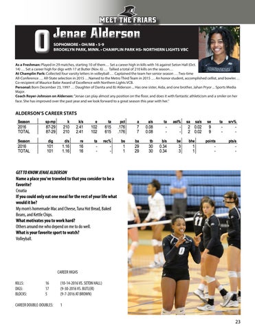 Jenae Alderson SOPHOMORE • OH/MB • 5-9 BROOKLYN PARK, MINN. • CHAMPLIN PARK HS• NORTHERN LIGHTS VBC