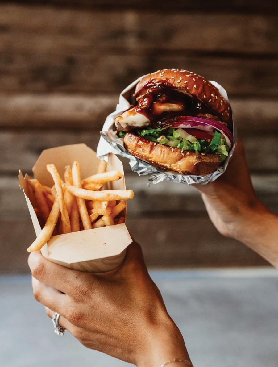 Arecent visit to Narragansett’s new food hall yielded people-watching almost as varied and enjoyable as the culinary options. There was seven-year-old Monica from North Kingstown who lamented, “Mom! That’s so gross! How can you eat that?” of her parents’ choice of oysters for an appetizer. She ripped off a piece of cheese pizza and tossed a small beanbag toward the cornhole board on the patio, missing it by an inch. Next to the family, four 20-somethings, fresh from Narragansett Town Beach and each with a fat burger in front of them, laughed loudly as they decided what shots to order from the expansive drinks menu. Nearby, a baseball game aired on a mounted TV, and music blared from a speaker, but both were hard to hear over the din of this young, exuberant crowd. It was a Monday