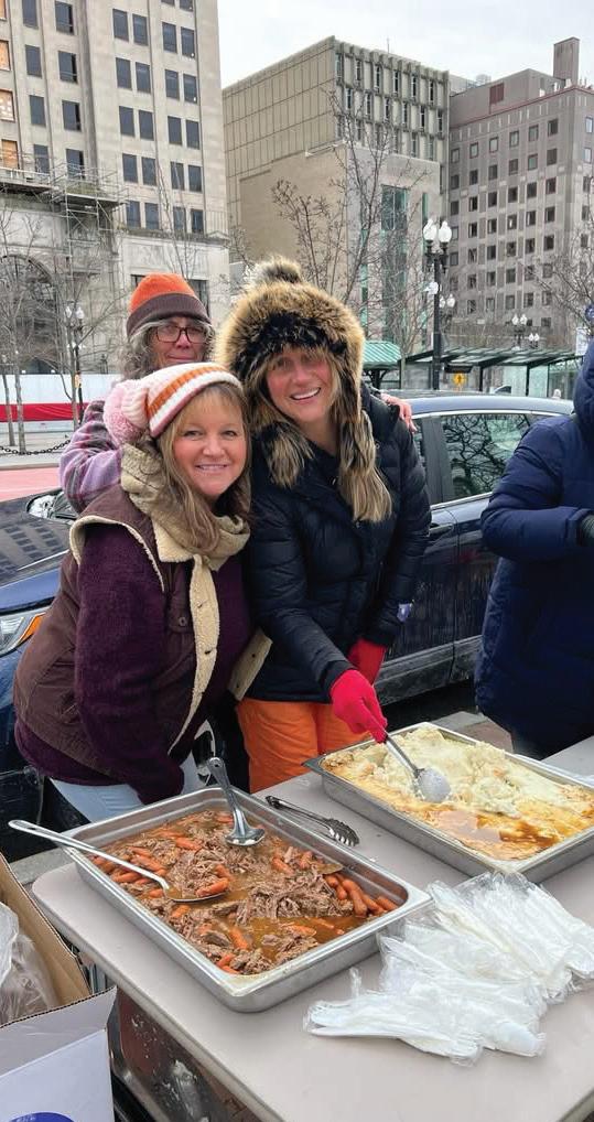 “When I knew I needed help serving meals in Kennedy Plaza, I reached out to these amazing women and of course, they said ‘of course,’” gushes Schartner. On a recent Saturday, a group of volunteers including Lyons and Julie Beebe, owner of Yes! Gallery/JW Graham in Wickford, cooked and served hot meals to about 75 people at Kennedy Plaza in Providence, along with distributing basic necessities. Beebe says of her own experience, “I did not expect the level of connection I would have with the people that came by. It wasn’t just about making sure their bellies were filled with great food. We shared conversation, laughs, handshakes, and hugs – true human connection. We need more of that in this world.”