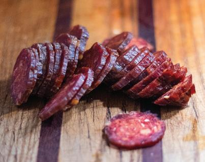 good-natured competition between the Westerly families who partake in the tradition of making soppressata. Recipes passed down over generations are put to the taste test. Leading up to the main event, a large panel of judges samples nearly 70 sticks of soupy and must narrow them down to the top 10. The judging follows a strict, “scientific” rubric created by lead judge, chef, and lauded culinary instructor David Miguel that establishes rigorous guidelines to define what makes the best soupy. “People take it