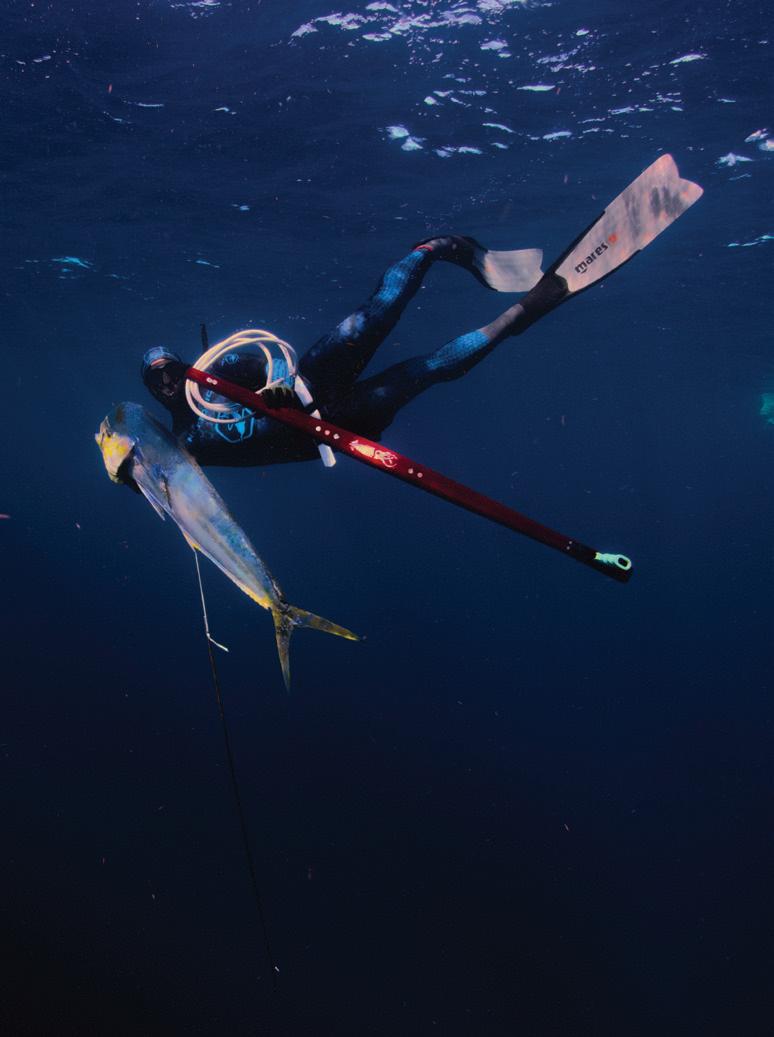 coastal waters face certain limitations. “Here in New England, we’re usually hunting at shallower depths because of poor visibility and the availability of the fish,” he explains. “You don’t need to get down deep. We don’t have the best visibility either. Most of the spearfishing we do here is on free dives, without scuba gear. Some scuba guys here spearfish, but for the most part, we are doing