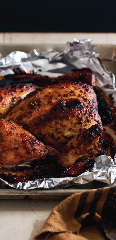 life to a classic soup. Another standout is her tabaka-style adjika chicken, which she calls “my family’s go-to chicken recipe.” The mayonnaise-based marinade keeps the chicken moist and tender, while the adjika paste adds spice and heat; Chesnakova notes that the adjika paste can easily be substituted with chopped Portuguese hot peppers for a local twist. For dessert, find offerings like Armenian butter pastry (gata), which falls somewhere between a rugelach and strudel with its striking spiralled layers.