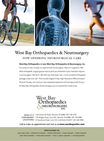 Call to make an appointment and visit us at www.westbayortho.com SPECIALIZING IN: FRACTURE CARE • ARTHRITIS SURGERY • SPORTS MEDICINE • HAND SURGERY • SPINE SURGERY JOINT REPLACEMENT • SHOULDER SURGERY • FOOT & ANKLE SURGERY / NEUROSURGERY