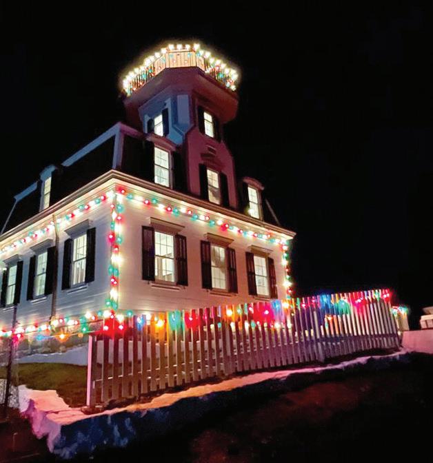 The Friends of Pomham Rocks Lighthouse, consisting of dedicated volunteers who maintain the historic site, have been quite busy in recent years. They restored the interior to Victorian-era elegance, replaced aging fences with charming picket rails, and installed storm shutters on all 19 windows. The lighthouse routinely welcomes hundreds of visitors from across the country annually, each drawn to this sentinel of upper Narragansett Bay. Since 2004, the Friends, a chapter of the American Lighthouse Foundation, have worked tirelessly to protect this National Register landmark. Their commitment shines as brightly as the holiday lights.