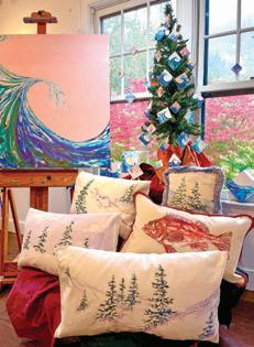 New pillow designs for winter rolling in to Cédian Painting: Studio-Gallery Pillows, tiles and paintings by Jennifer Jones Rashleigh 3848 Main Road • @cedianpainting • cedianpainting.com