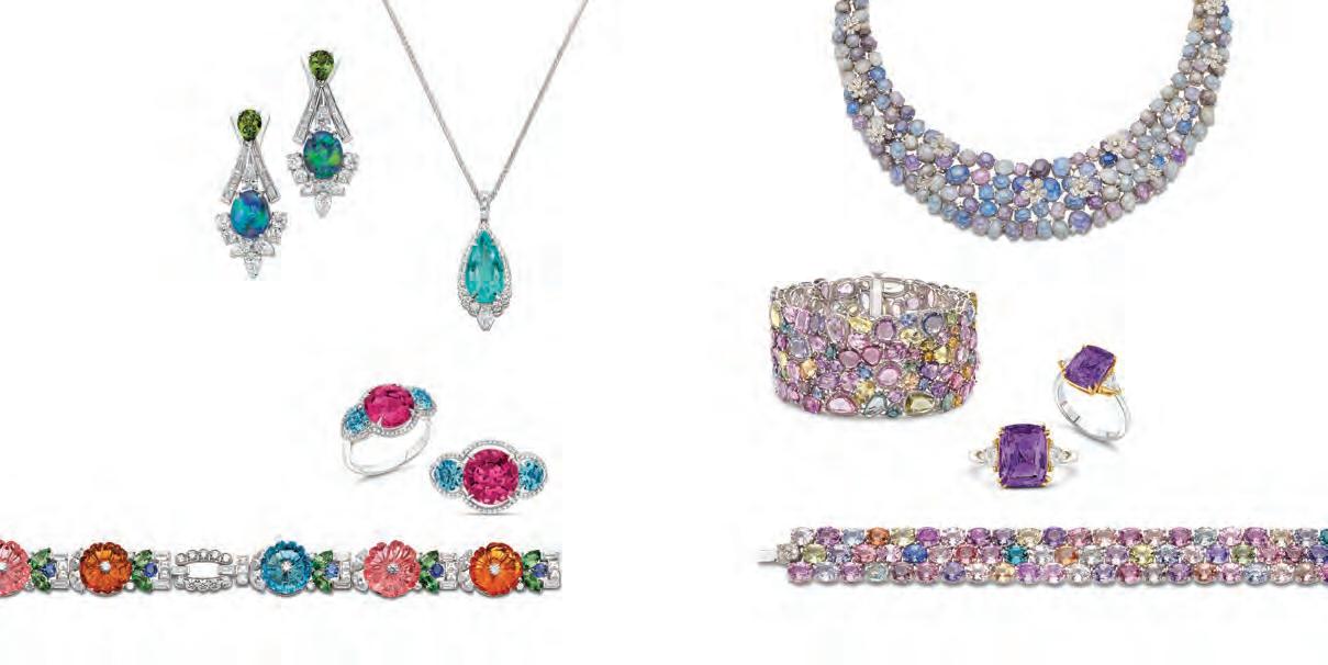 4. Bracelet with aquamarine, pink tourmaline, citrine, tsavorites, sapphires and diamonds set in platinum. $53,570
