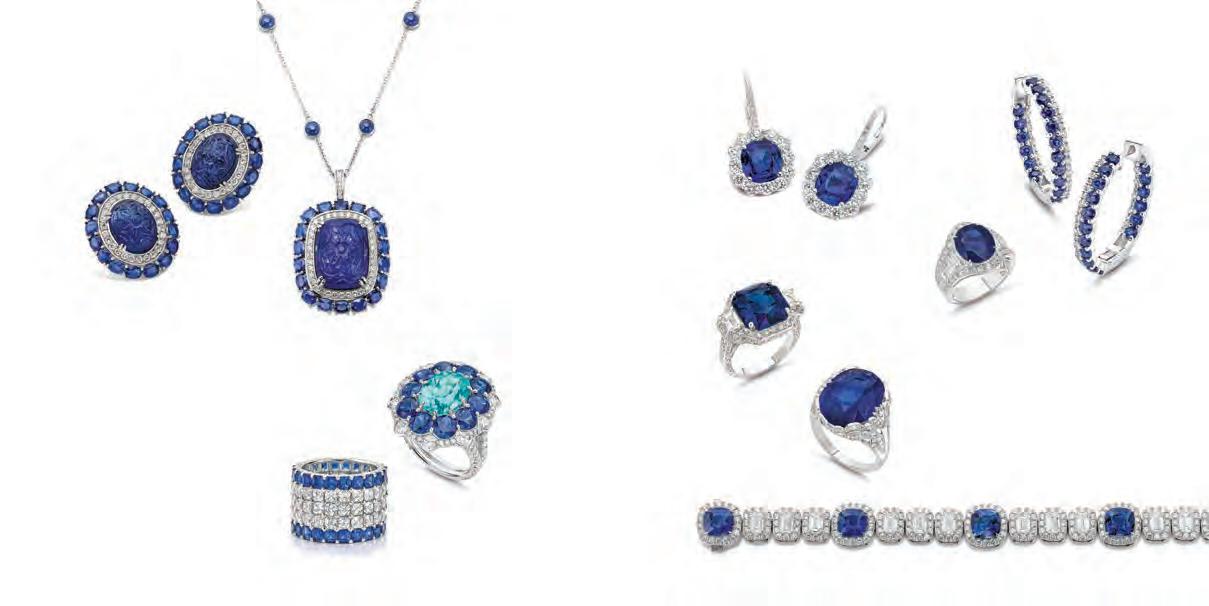 1. Earrings with 33.02 carats of handcarved tanzanite set in 18k white gold with sapphires and diamonds. $26,000