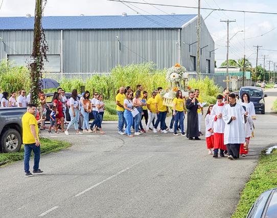 Na Paróquia Nossa Senhora de Nazaré, em Paramaribo, no Suriname, onde atuam os Missionários Redentoristas, os fiéis expressaram sua fé durante as festividades da padroeira. Após dois anos de interrupção da festa em sua plenitude, devido à Covid-19, o Círio de Nazaré foi realizado no dia 06 de novembro. “A alegria e emoção tomaram conta de todas as pessoas, que puderam mais do que pedir, agradecer por ter superado a situação tão complicada da pandemia”, afirmou o Fr. Marcos Antônio, C.Ss.R., que está realizando sua experiência de Estágio Pastoral no Suriname e animou a procissão que antecedeu a missa campal, presidida pelo pároco, Pe. José Patrício, C.Ss.R.