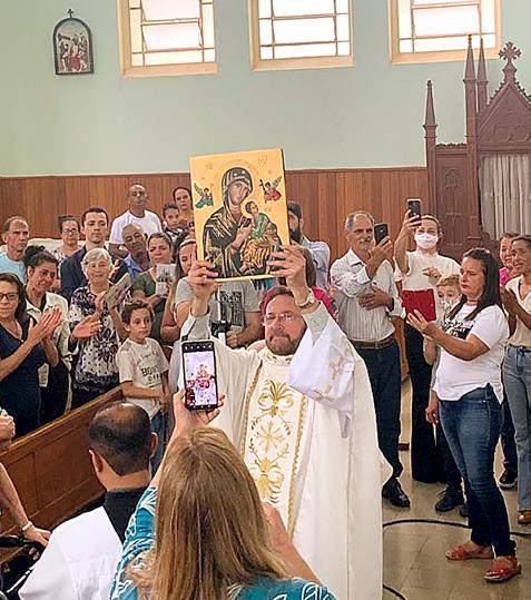 As comemorações dos 25 anos de sacerdócio do Padre Carlos Viol, C.Ss.R. tiveram início em Barbacena (MG), cidade natal do jubilar, com o tríduo preparatório, de 03 a 05 de dezembro, na Paróquia Nossa Senhora da Assunção. No dia 06, uma Missa Festiva foi celebrada na quadra da Escola Estadual Gabriela Ribeiro Andrada, presidida pelo Padre Viol e concelebrada pelo Bispo Auxiliar de Belo Horizonte, Dom Nivaldo Ferreira – que é sobrinho do jubilar e fez a pregação, além de diversos outros sacerdotes. O Diácono Demerval, da Paróquia local, também participou da Celebração, que foi animada pelo Superior da Província do Rio, Pe. Nelson Antonio Linhares, C.Ss.R. Na ocasião, foi feita a entronização do Ícone de Nossa Senhora do Perpétuo Socorro e do quadro de Santo Afonso Maria de Ligório na Igreja de São Pedro e São Paulo, como marcas Redentoristas que ficarão naquele templo. A iniciativa atende ao apelo feito aos Missionários Redentoristas pelo Papa Pio IX quanto à devoção mariana: “Fazei-a conhecida no mundo inteiro!”.