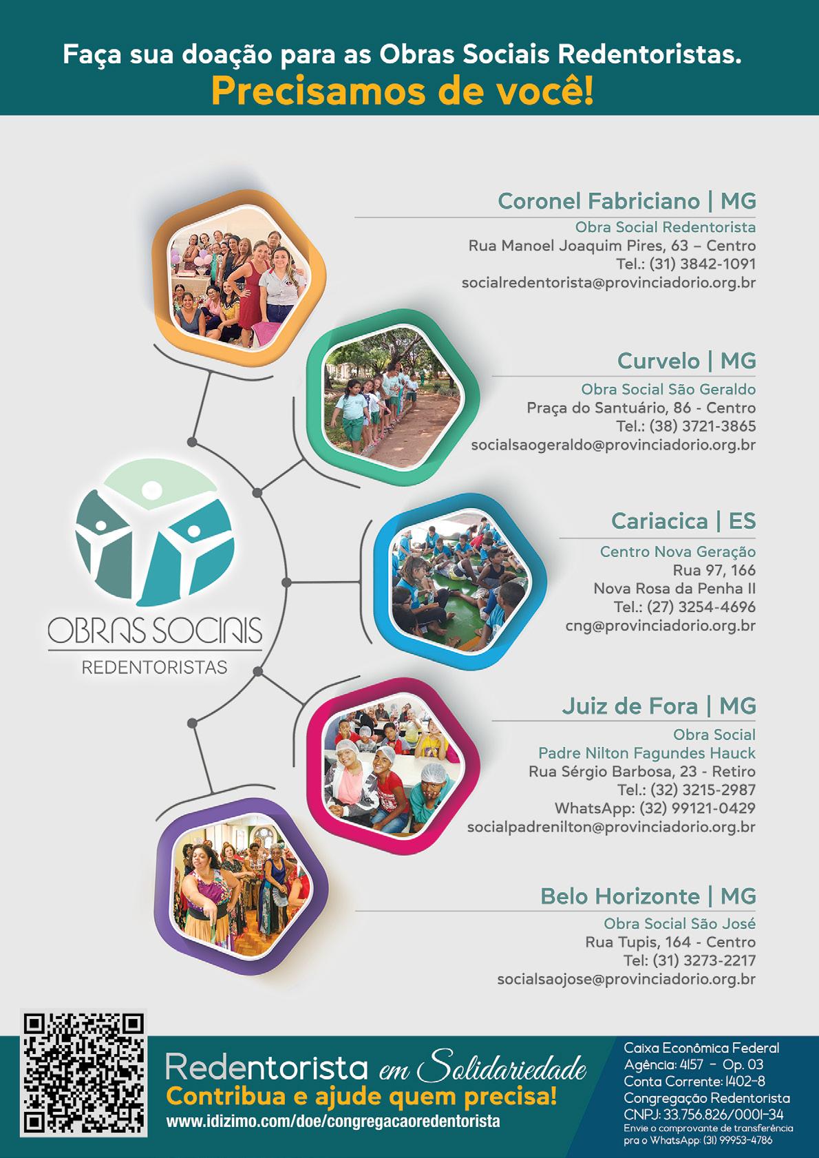Vivemos um período crucial para a nossa Espiritualidade Redentorista: o mistério da encarnação, o nascimento do menino Deus. Assim como nos diz a bíblia e toda a tradição de nossa Igreja: EMANUEL, DEUS CONOSCO! Nós, Redentoristas, somos chamados a traduzir para os fiéis de nossas paróquias e santuários esse rosto próximo de Jesus que habita nossa humanidade e nos convida a olhar para o Pai com mais confiança. Feliz Natal! Celebramos com esperança esse tempo!