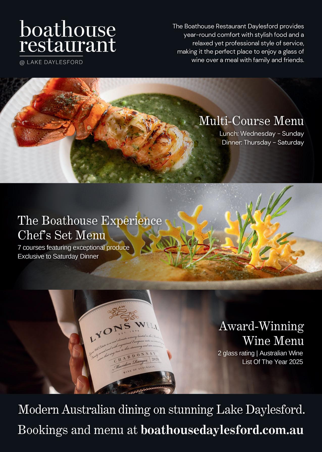 Located on the picturesque foreshore of Lake Wendouree in the heart of Ballarat, the Boatshed Restaurant is a sanctuary of fine dining, stunning views and warm hospitality. With its exquisite décor, the restaurant offers a relaxed ambience, making it the ideal spot to indulge in a memorable meal, a fine glass of wine or perhaps a cheeky cocktail.