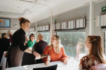 Drink local award-winning wines plus ciders, craft beers and cocktails on board while there’s also hot and tasty food options available to eat if you’re after a snack and you can sit inside or outside to take it all in.