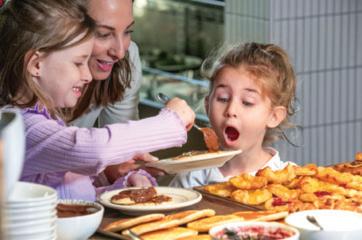 Free tea and coffee and a canteen with hot and cold food to purchase.