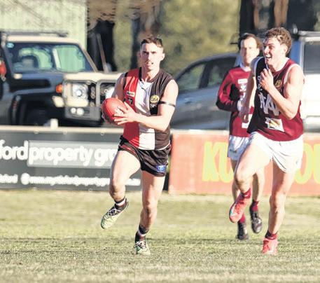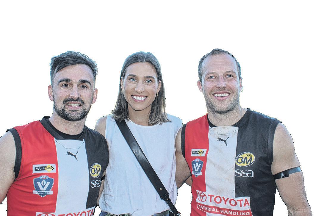 It was a very special Saturday at McNamara Reserve, with three club stalwarts celebrating milestone matches with victories. Mitch Dalbosco brought up senior game 200 alongside brother-inlaw Brody Ricardi, who celebrated his 150th senior game. On the netball court, Ricardi’s partner Saige Broz helped the A grade Saints get the win in her 200th A grade outing for the Saints.