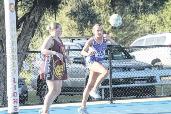CHALLENGING: Tayla Cartwright leaps in defence. PHOTOS: Janet Watt