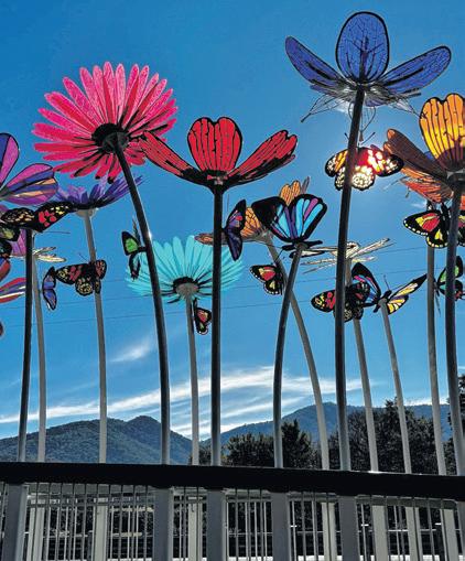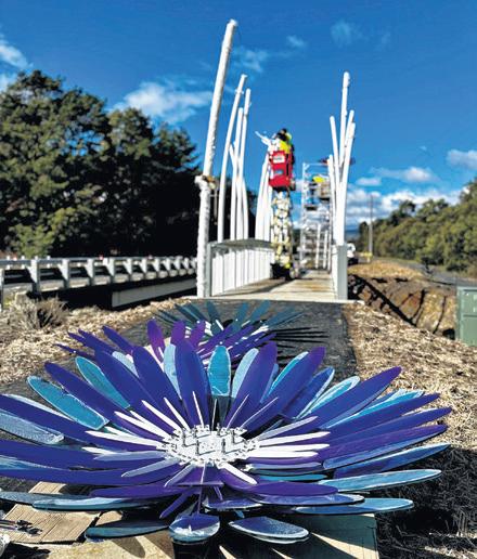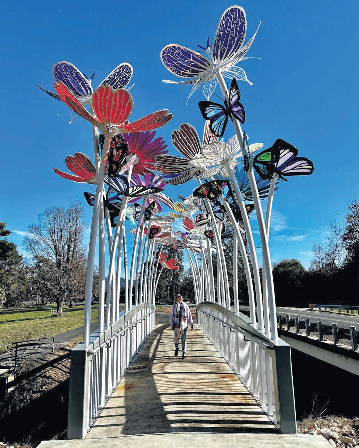 The Roberts Creek Bridge is a blooming work of art. The well used structure on the Murray to Mountain Rail trail between Porepunkah and Bright has been transformed with a flower and butterfly installation funded by the Victorian government. Full story page 2.