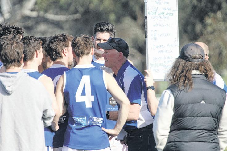 REV UP: Bright coach Michael Quirk fires his boys up at the quarter time huddle.