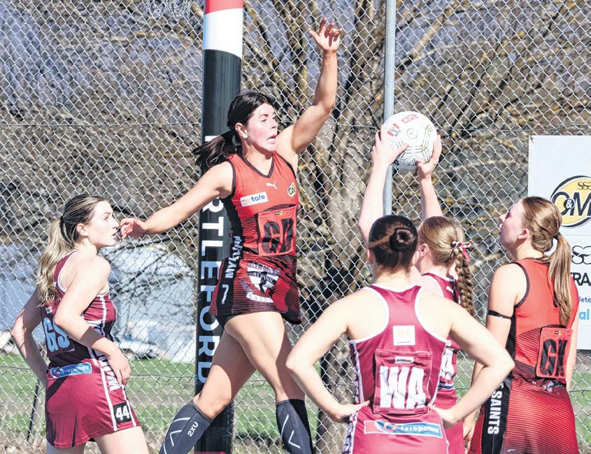 REBOUND PLAY: Jorja Reidy sends the Saints from their defensive end.