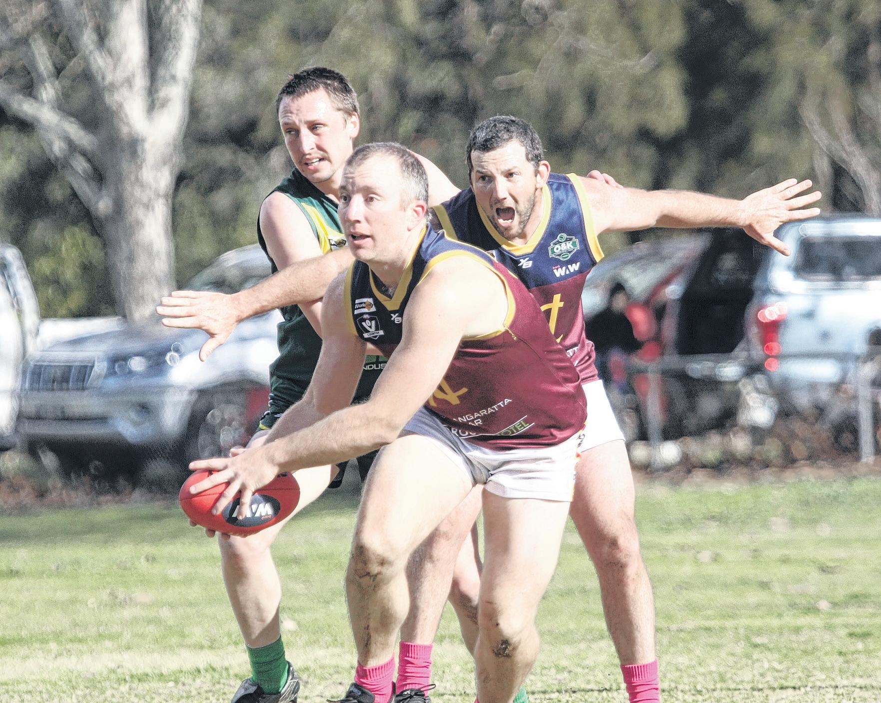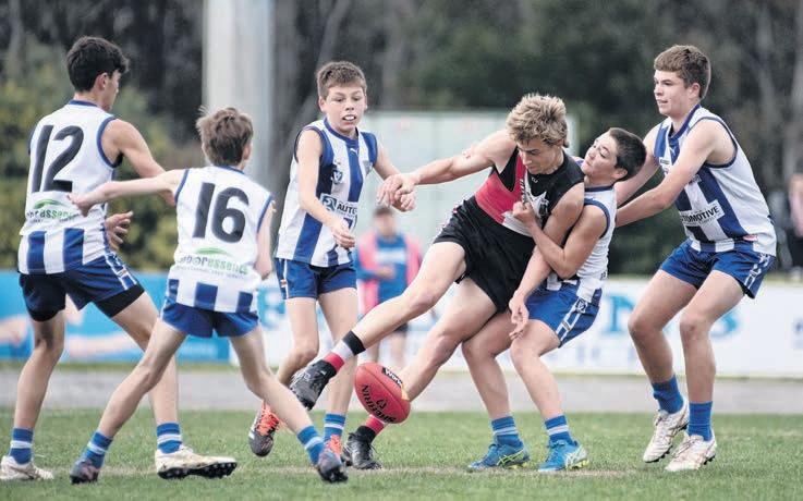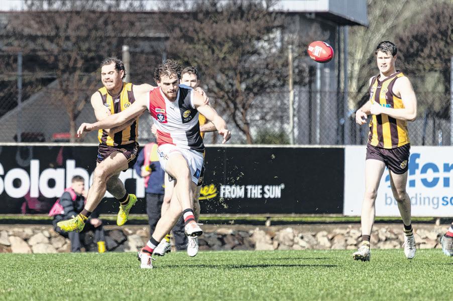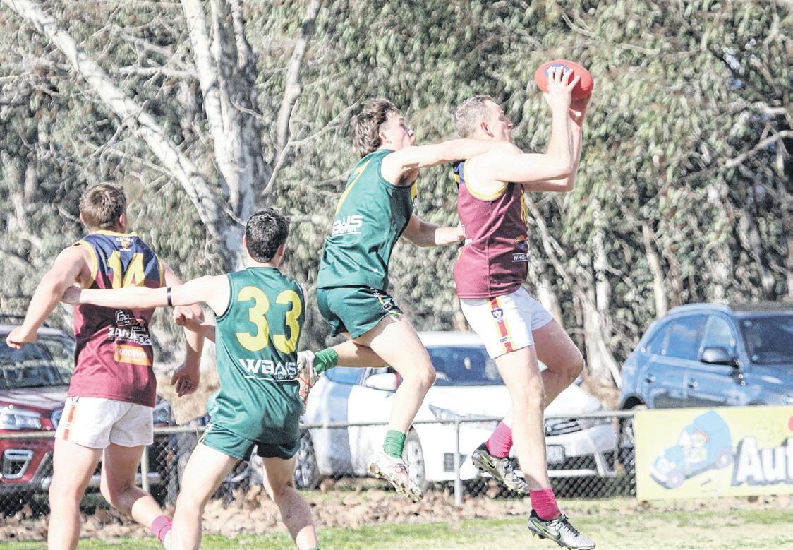 Myrtleford’s senior foot ball squad was given a ba rometer test ahead of finals by the ladder leading Rov ers, who took the points in a hard-hitting showdown.