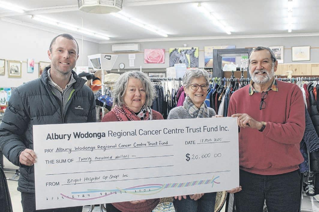 As the September 1 start date for Peter Dixon’s 2500km kayaking trek on the Murray River approaches, Bright Hospital Op Shop (BHOS) has donated $20,000 to help push his fundraising tally past its $75,000 target.