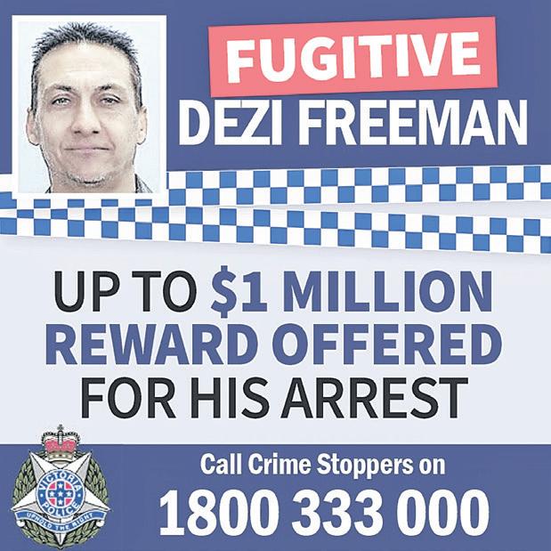 Any suspicious behaviour or other information about Freeman’s current whereabouts should be reported to Crime Stoppers Victoria via 1800 333 000 or submit a confidential report at www. crimestoppersvic.com.au