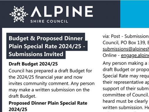 Your Award-Winning LOCALWEEKLY Wednesday, May 8, 2024 BRIGHT - POREPUNKAH - MT BEAUTY - TAWONGA - TAWONGA SOUTH Phone: (03) 5752 1058 www.alpineobserver.com.au $2.00 (inc.GST) THE ALPINE STAGE ONE SELLING FAST MELBOURnE SHOWROOM Natalia Sampson Sales Director natalia@brightvalley.com.au 0403 388 828 BRIGHT SHOWROOM Gerard Gray Owner, Dickens Real Estate gerard@dickens.com.au 0439 551 032 IT’S TIME TO SECURE YOUR ALPINE SANCTUARY stage onesellingfast A limited number of2, 3, 4 and 5 bedroom homes in the heart of the Alpine Shire are still available. Don’t miss the chance to own a home both beautiful and enduring, in a masterplanned community unrivalled for amenity and design. Contact one of our agents to secure your alpine sanctuary.
