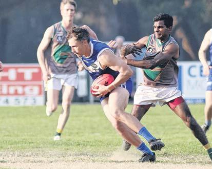 FROM THE FRONT: Bright skipper Sam Dalbosco was best on ground in the Mountain Men’s 49-point win over the Bats on Saturday.