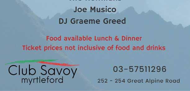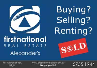 03 5752 2995 Phone for an appointment, call in to our 166 Myrtle Street, Myrtleford Need to keep up with the news? Get your Myrtleford Times & Alpine Observer delivered to your door every week For more information contact your local newsagent or the Myrtleford Times & Alpine Observer on 5723 0100. THE ALPINE Wednesday, August 9, 2023 - Page 29 www.alpineobserver.com.au Your Award-Winning LOCALWEEKLY Wednesday, August 9, 2023 BRIGHT - POREPUNKAH - MT BEAUTY - TAWONGA - TAWONGA SOUTH Phone: (03) 5752 1058 www.alpineobserver.com.au $2.00 (inc.GST) THE ALPINE BROTHERS’ LONGDISTANCE SUCCESS VENUE’S AUDIO FUNDING JUNIOR BOMBERS IMPRESS AGAIN Page 2 Page 3 Sport