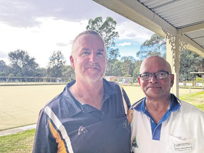 CHAMPION: Mikey Clayton (le ) took out Myrtleford Bowls Club’s men’s handicap singles championship from Terry McCaw.