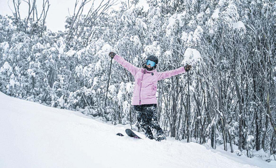 ALPINE ACHIEVEMENT: COMPETITOR, MANDY ELLINGTON CELEBRATED HER VICTORY AT THE FINISH LINE.