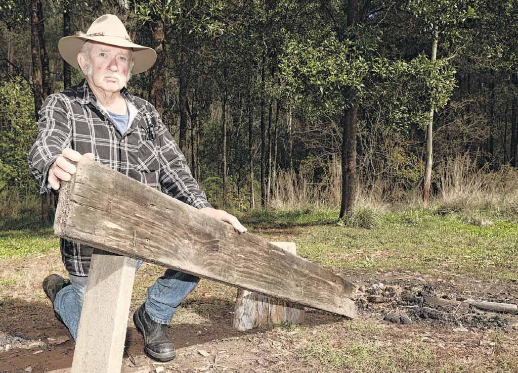 In the vicinity is a small clearing just off Dungey Track with the ashes of two fires and the burnt remains of what Mr Webster said is a timber seat installed just under 20 years ago.