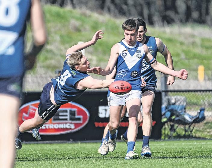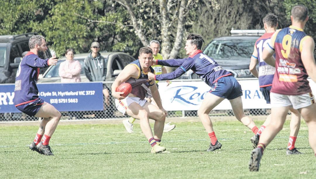 Milawa was not making it easy – their pressure on the ball carrier and stifling structure saw them win multiple holding the ball free kicks, running down players as they struggled to clear the ball.