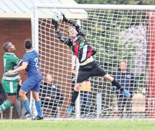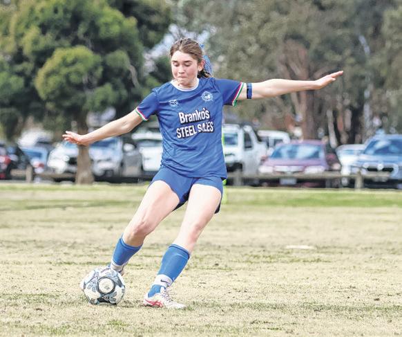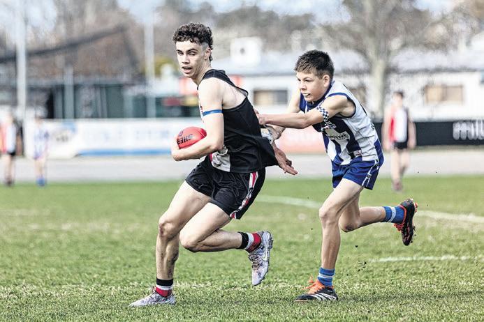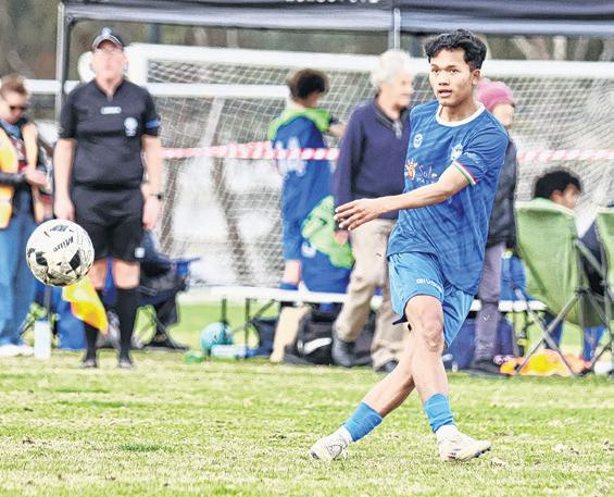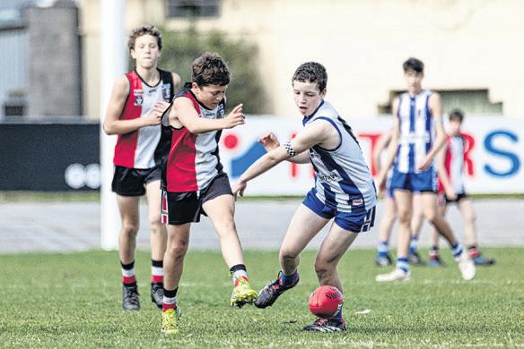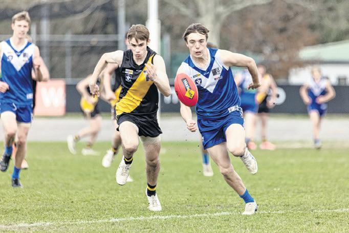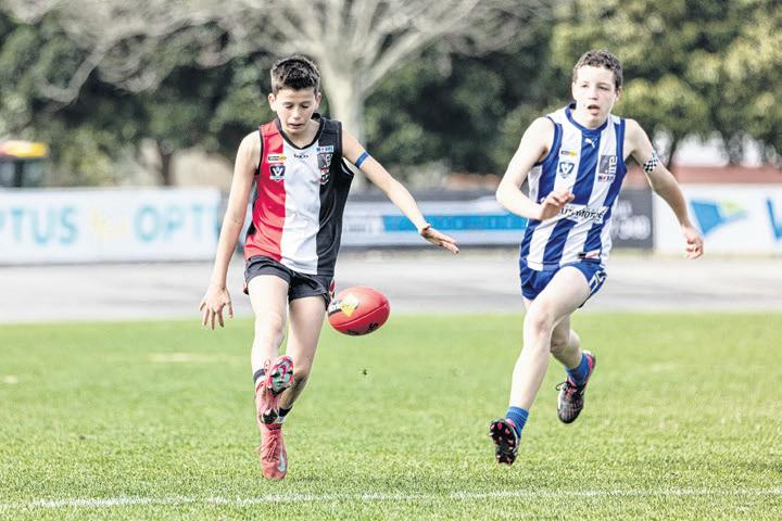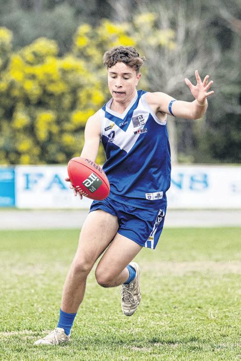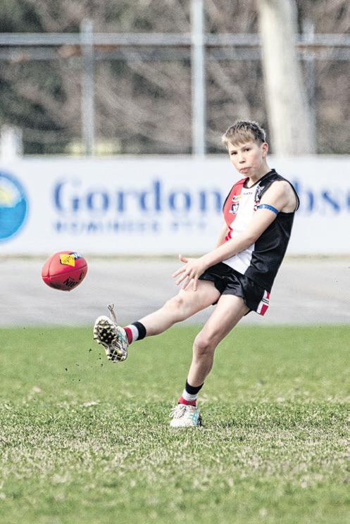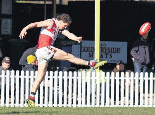GAINING GROUND: Riley Calvene boots the ball long down the line.